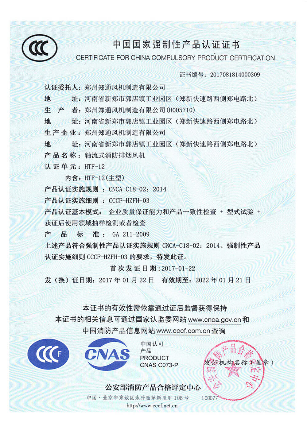 鄭通風機主要產品包括:高壓風機、不銹鋼風機、消防排煙風機、防腐防爆風機、廚房排油煙風機、玻璃鋼風機、鍋爐引風機、軸流風機、柜式離心風機、鍋爐引風機,產品通過ISO9001、ISO14001、ISO45001國際標準化組織制定的質量管理體系認證,部分產品通過了3C認證和國家防爆電器產品質量監(jiān)督檢驗中心認證。